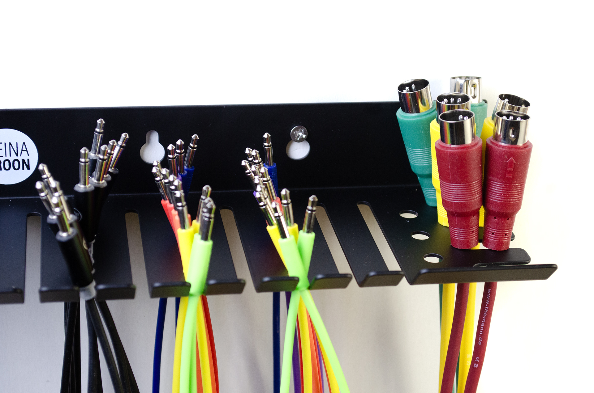 Heinakroon 18 slot Eurorack patch cable holder, with accessory shelf