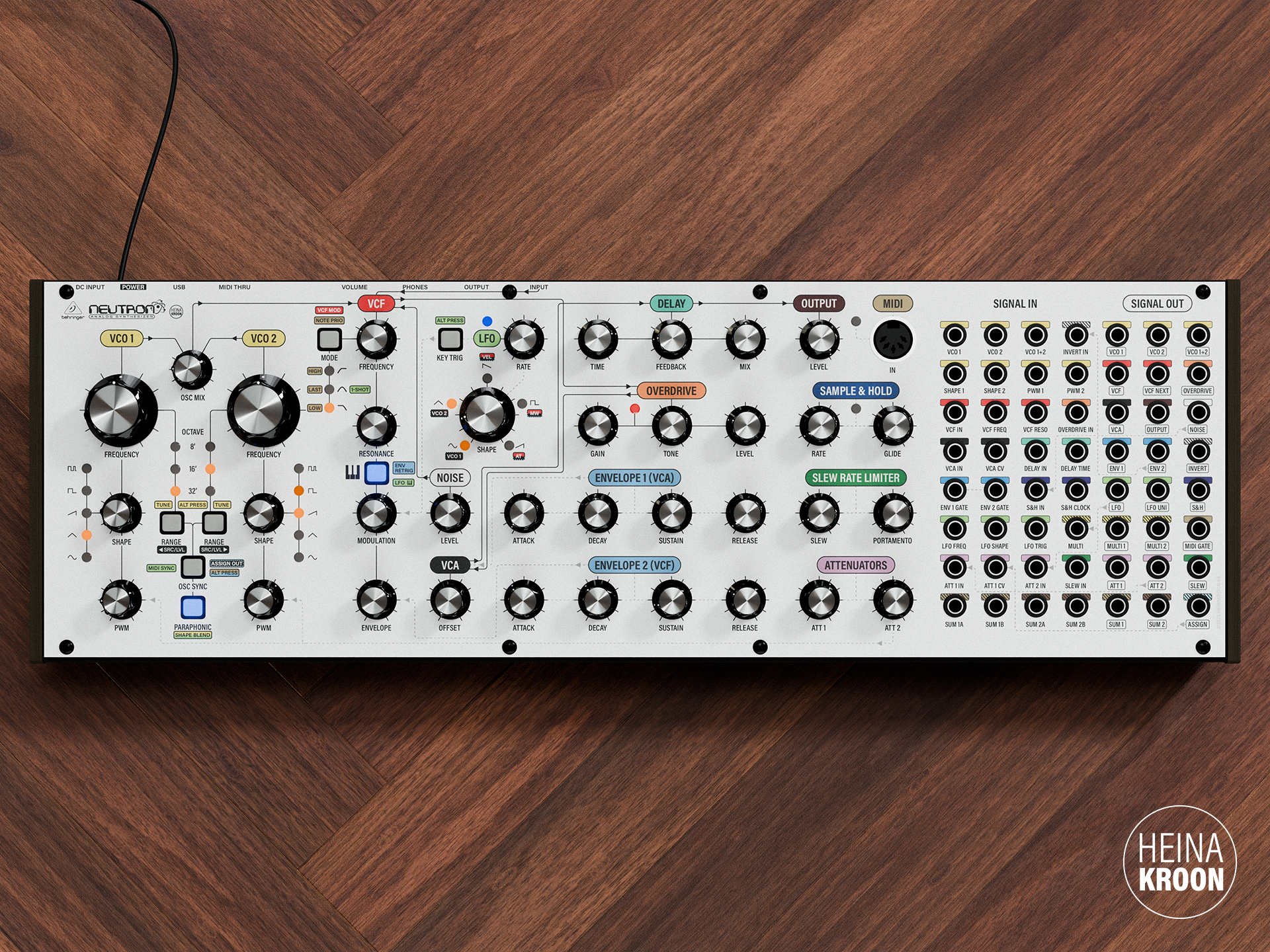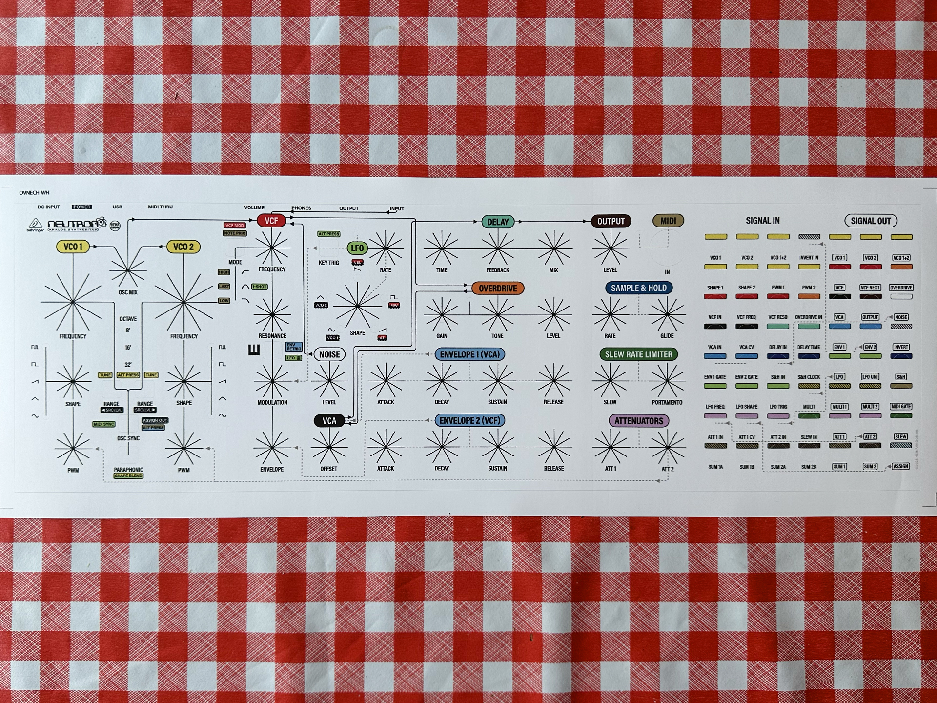 Chart turns your Neutron into a clearly mapped instrument, with prewired signal paths and modulation routings visibly traced on the panel. Whether you’re learning the layout or optimising your workflow, this overlay helps you follow both audio and modulation flows at a glance.