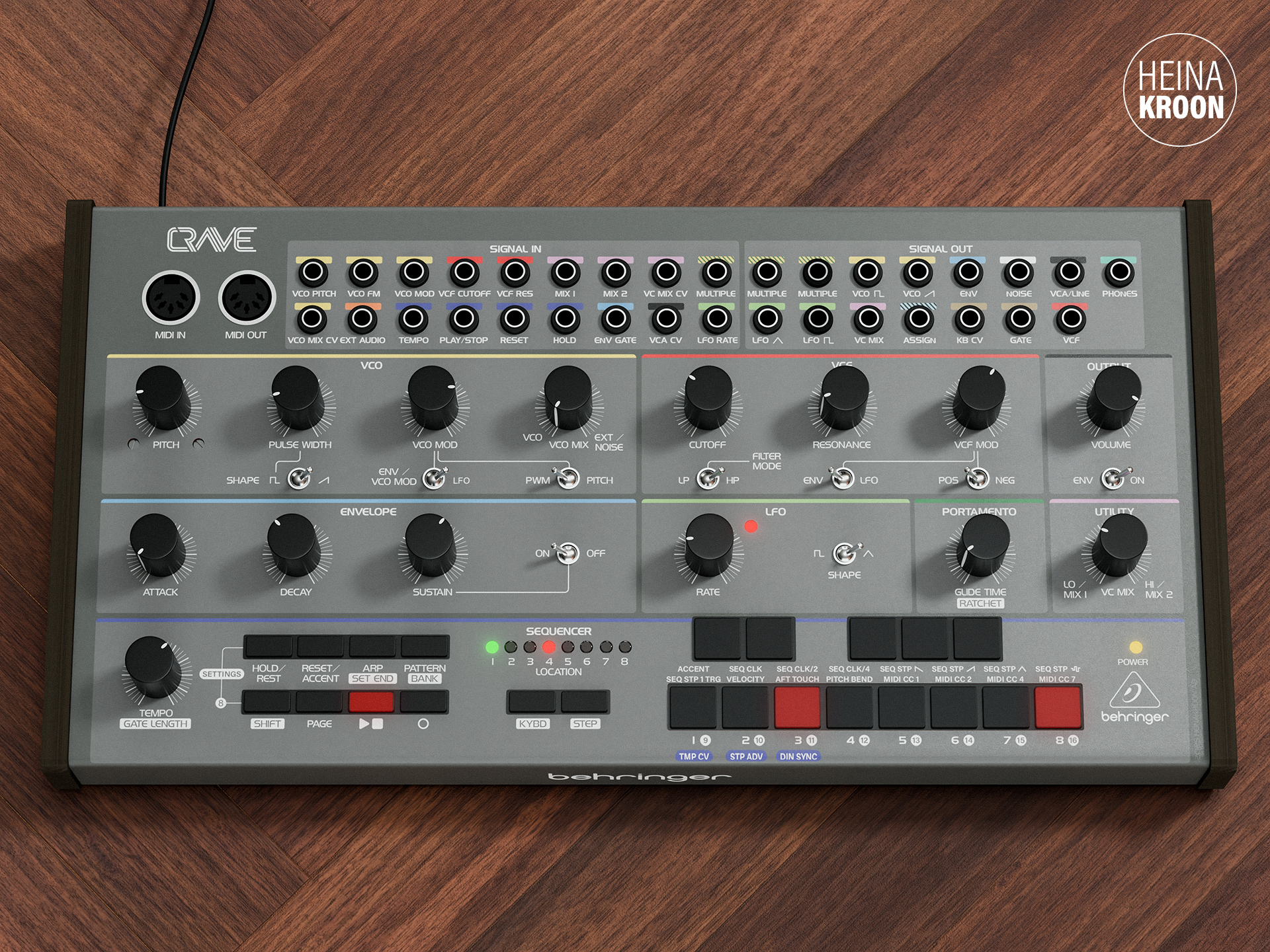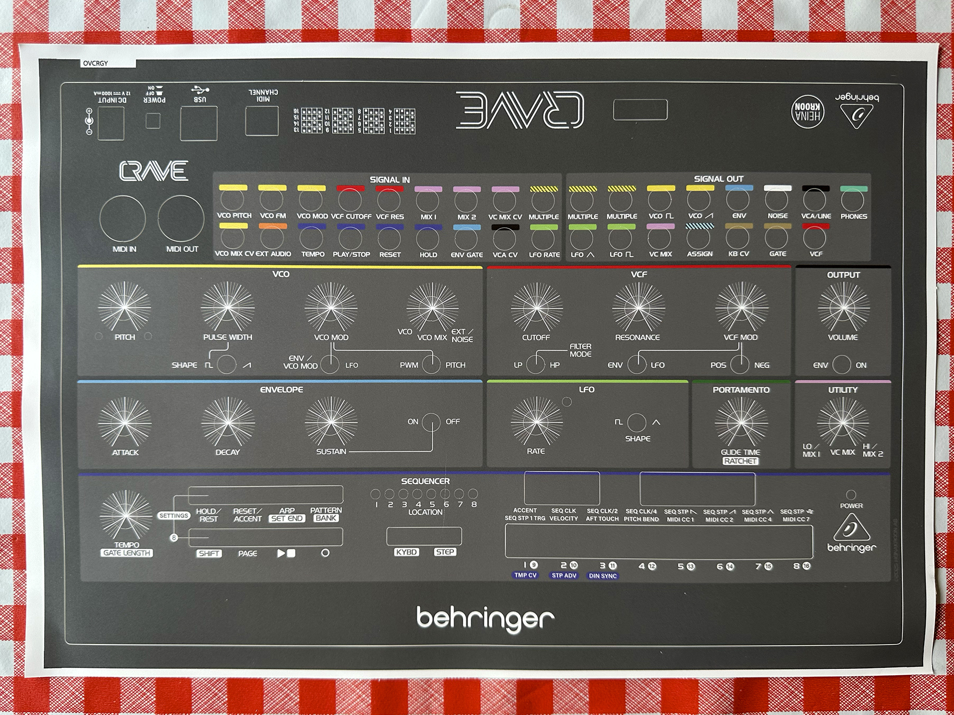 The overlay also uses a subtle color-coding, with highlighted pre-wired patch pathways for faster signal tracing and easier patching.