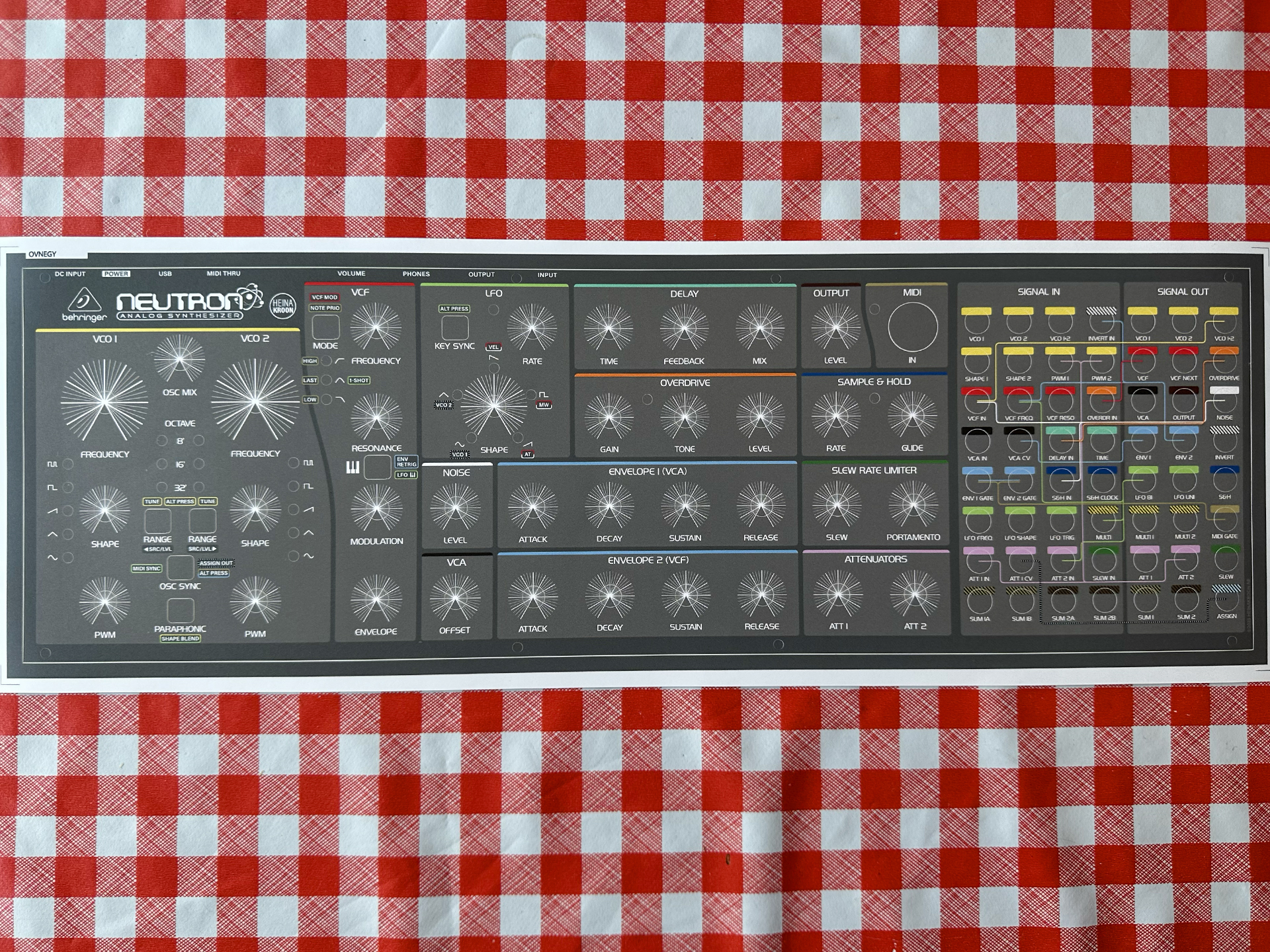 The overlay also uses a subtle colour-coding, with highlighted pre-wired patch pathways for faster signal tracing and easier patching.