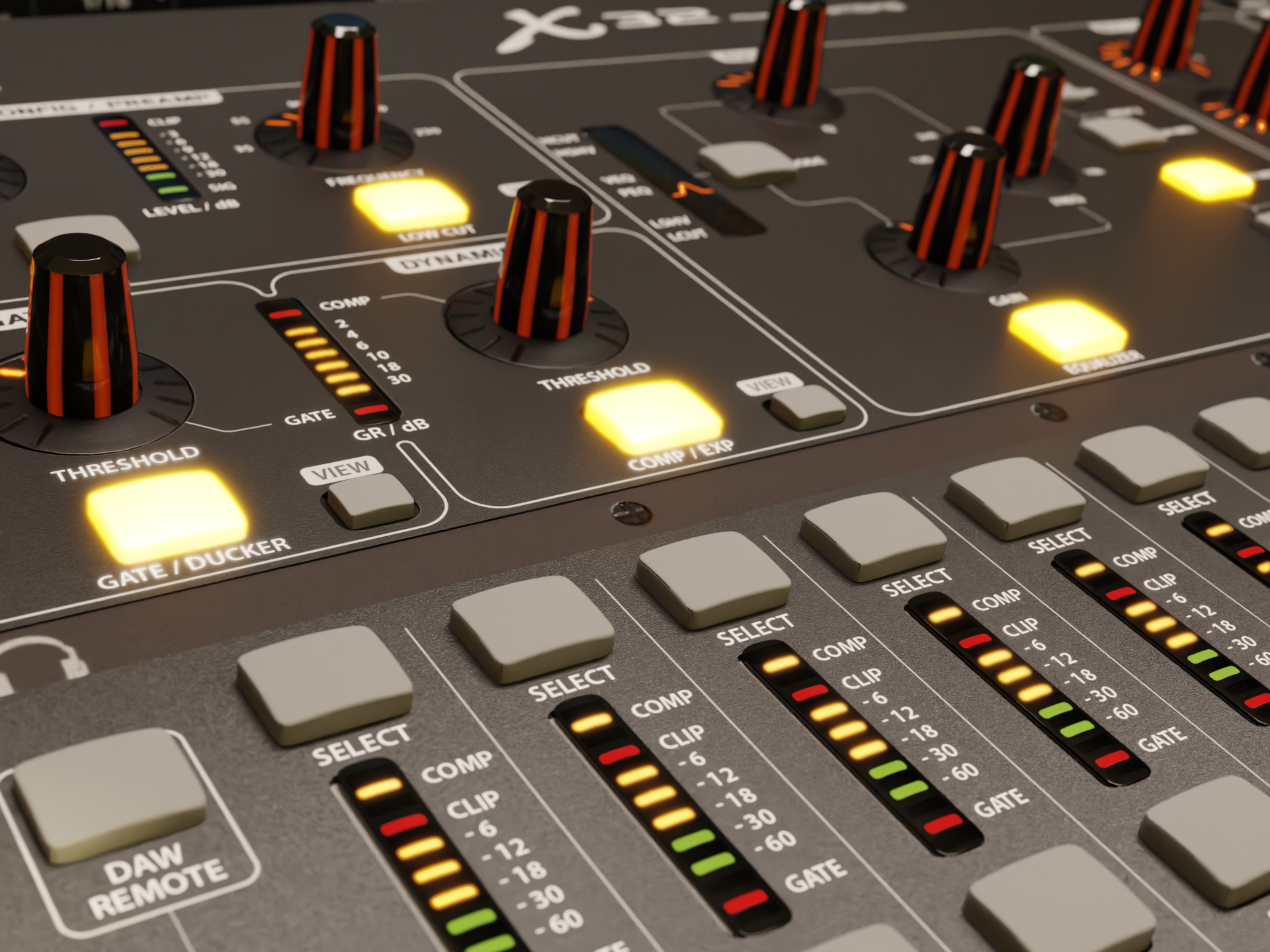 Dual-Tone Zonal Navigation: Beyond the inverted fader backgrounds, the Post-modern uses varying grey tones to visually separate the main input section from the bus and master controls. Identify your mix zones by color-depth alone, drastically increasing your speed in high-pressure environments.