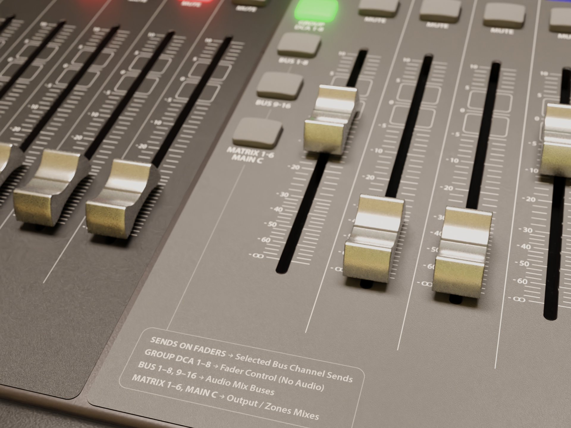 Integrated Mode Legends: No more second-guessing. Clear, concise legends are printed directly next to your channel and bus mode buttons (e.g., Sends on Faders, DCA, Matrix). It provides an instant “on-board manual” for guest engineers and rental clients.